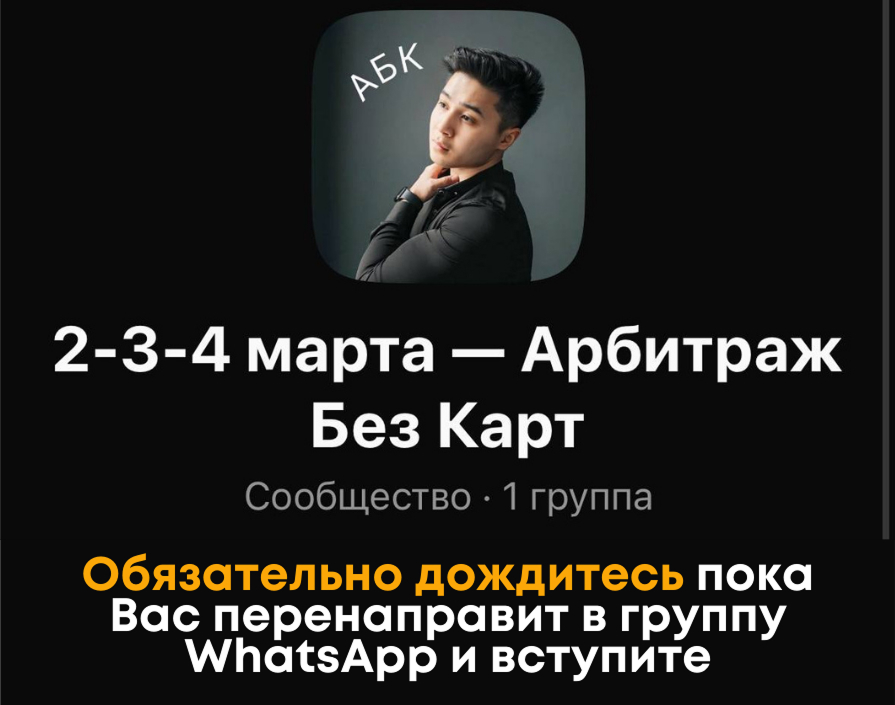 Просто заполните Ваше имя и номер телефона, далее вас перенаправит в группу WhatsApp,